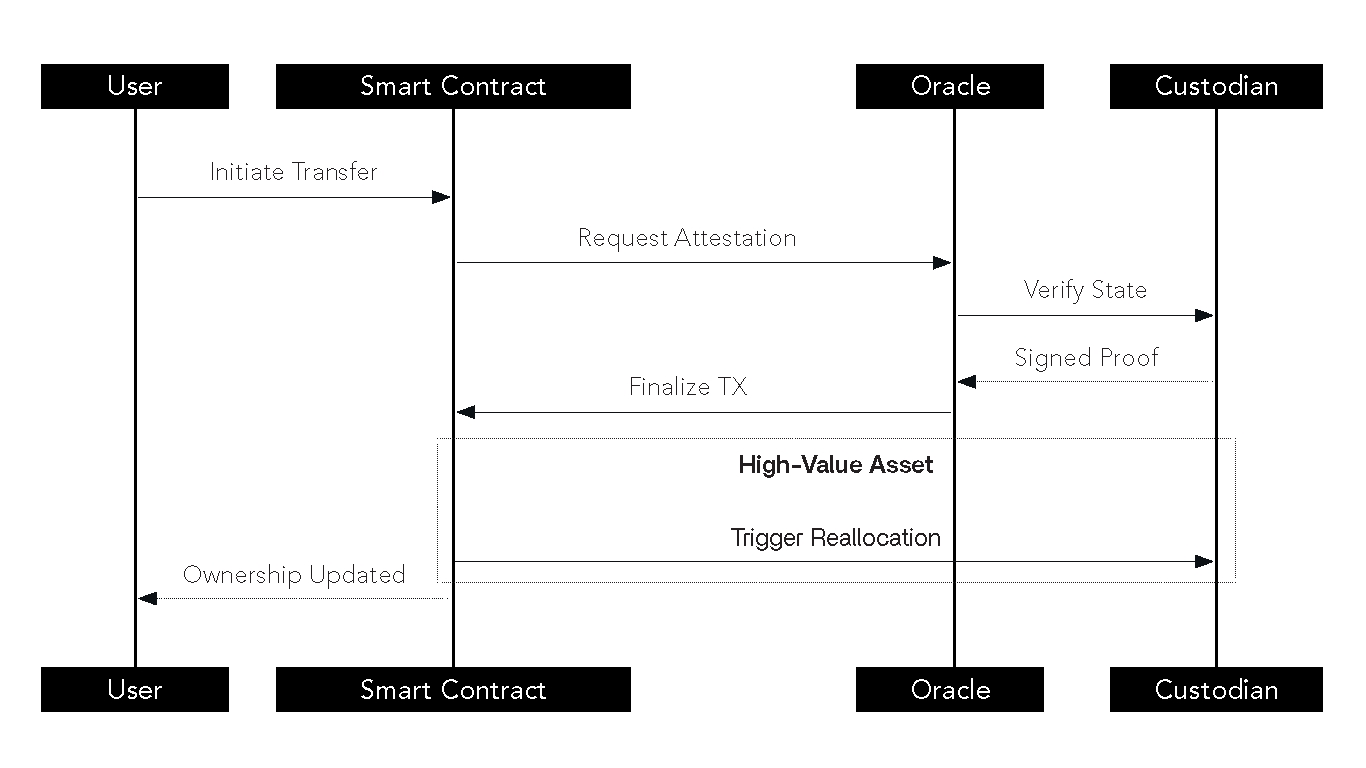 For assets under high-value custody, transfer of the token implies custody reallocation instructions to the custodian (e.g., vault transfer, legal ownership re-registration). For fractionalized assets, ownership changes are recorded exclusively on-chain unless a party initiates full buyout and redemption.